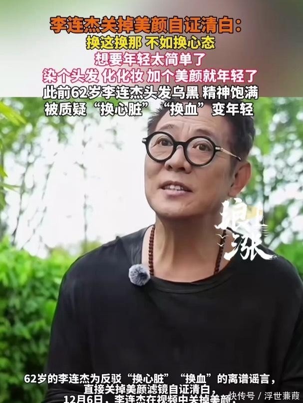信息来源:原文登载于极目新闻2025年12月7日关于“62岁李连杰发视频关掉美颜否认“换心脏”“换血”:换这换那,不如换心态,谁会冒着生命风险换心脏;此前曾因颈部良性肿块接受手术切除”的报道